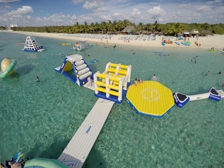 Private Beach, a secluded and beautiful spot exclusive for you an your party. Enjoy a delicious Angus cheese burger, a floating water park, kayaks and stand up paddle boards, surrounded by coconut trees and unlimited margaritas, ice-cold beers, sodas and purified water.