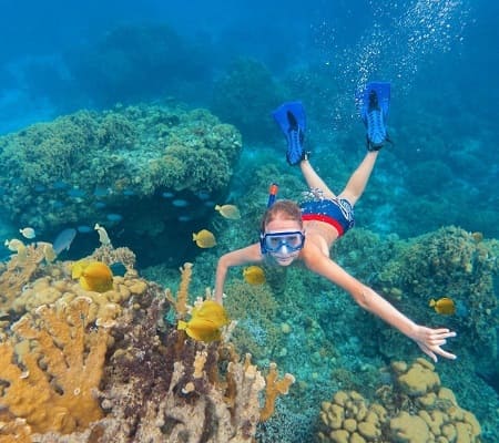 Sail on a comfortable catamaran to world-class snorkeling, then enjoy our private beach with super-fun Aqua Park.