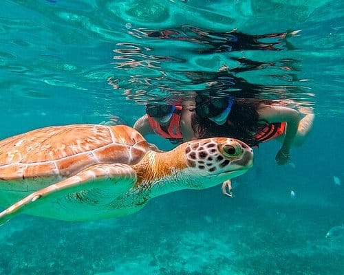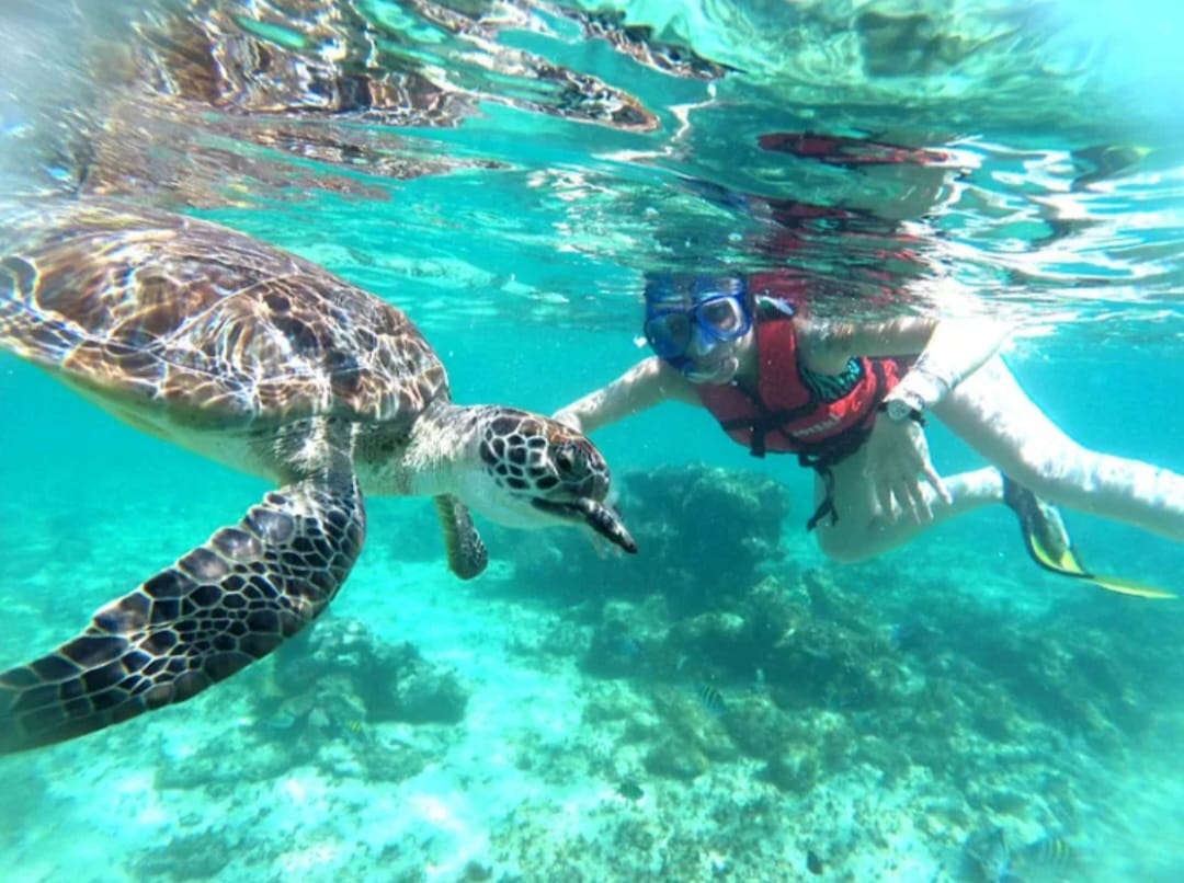 Sea turtles live in this area of the reef, so we jumped into the water in a shallow area to snorkel with turtles.