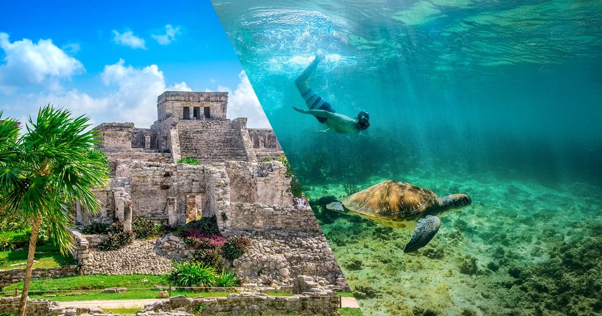 This snorkeling tour includes a boat tour from the beach to the Mayan ruins, we sail in front of the main castle of the ruins and there we stop to appreciate the magnitude of the Mayan empire.