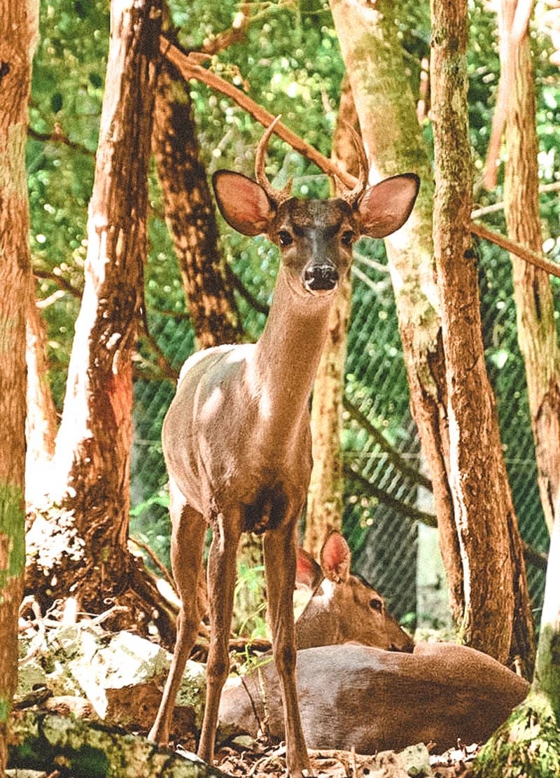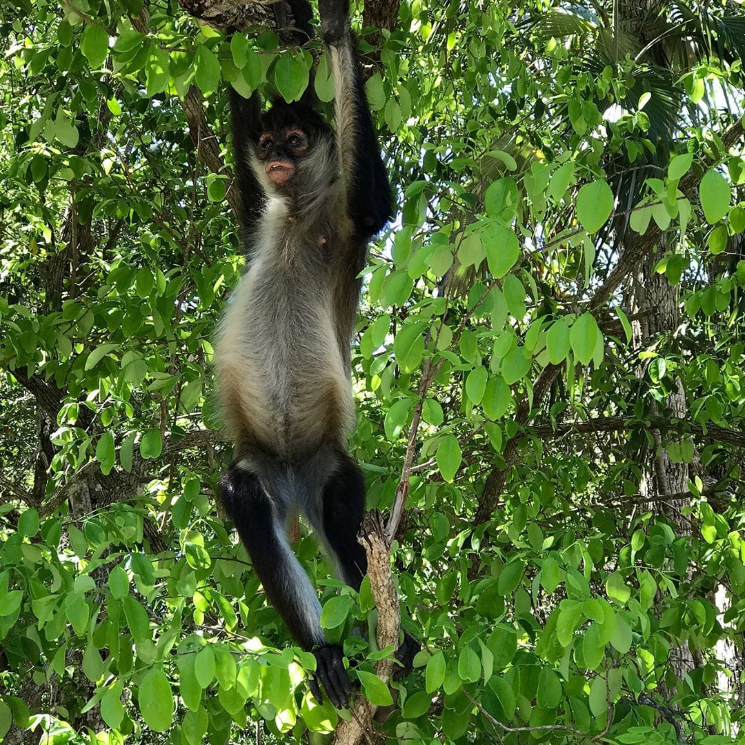 : Wildlife experience, featuring a rescue center with spider monkeys, white-tailed deer, peccaries (wild pigs), and crocodiles. Visitors often spot free-roaming iguanas, coatis, and monkeys in the jungle, while the “Living Museum” provides educational, interactive opportunities to see snakes, birds, and skulls.