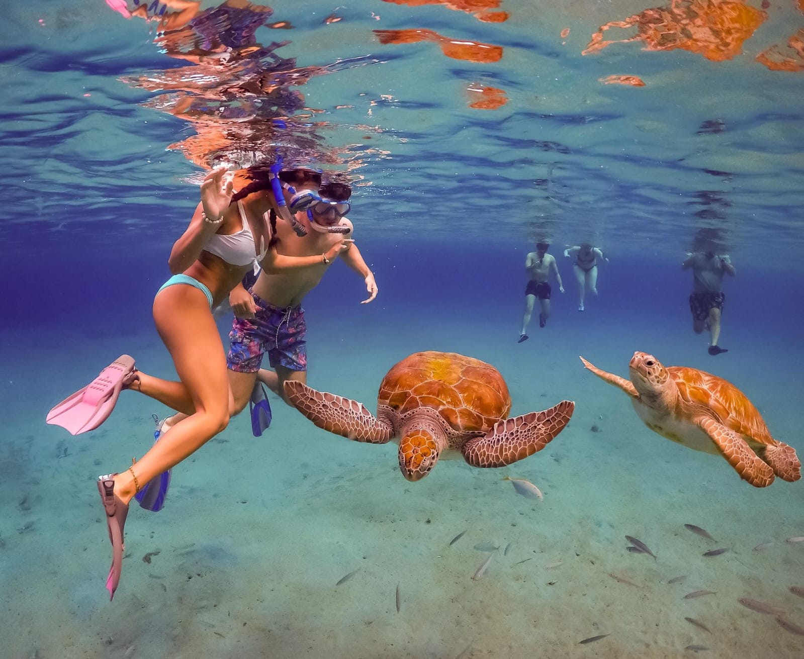 : Turtle Snorkeling: Swim alongside gentle sea turtles and vibrant marine life, We will sail you off to the mayan reef on boat.