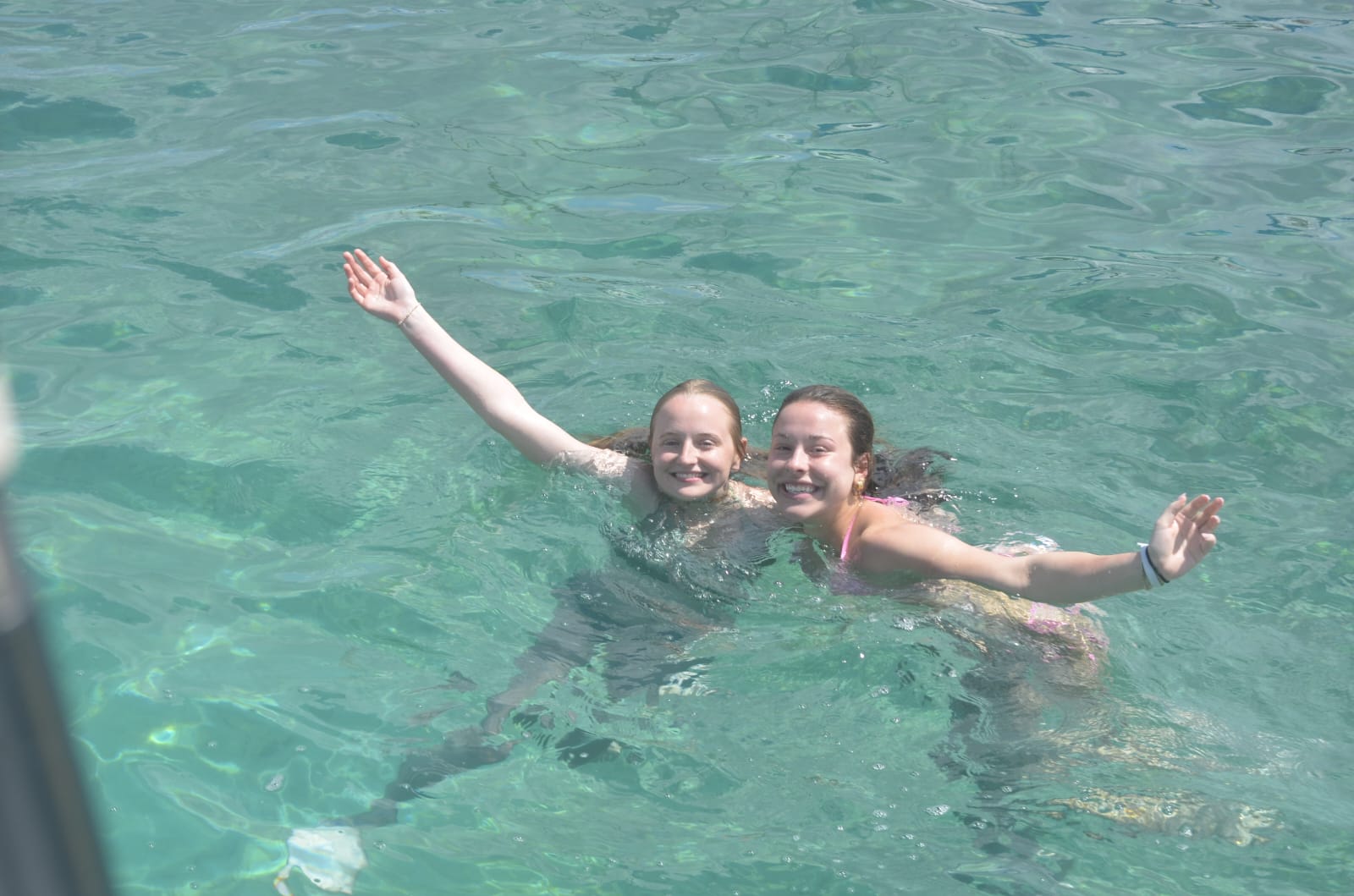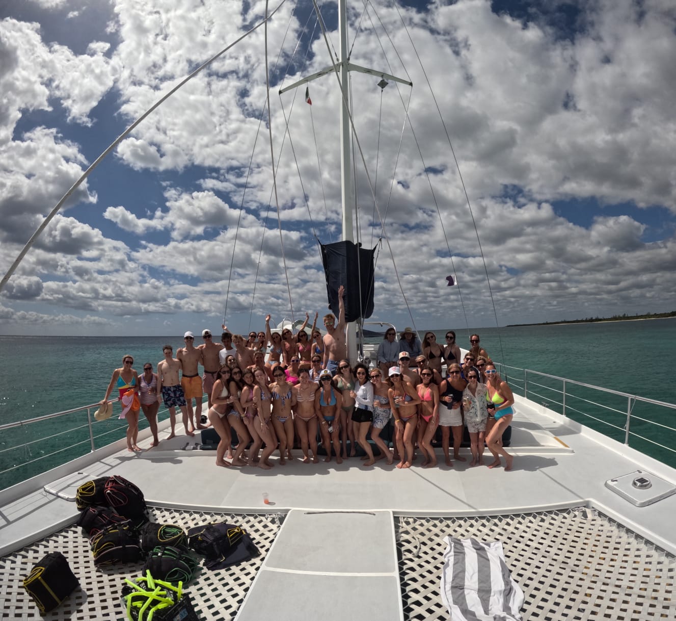 Our professional and experienced crew will welcome you aboard with a welcome drink and give you a safety briefing for all the activities of the tour and amenities of our luxury 65 foot catamaran.
