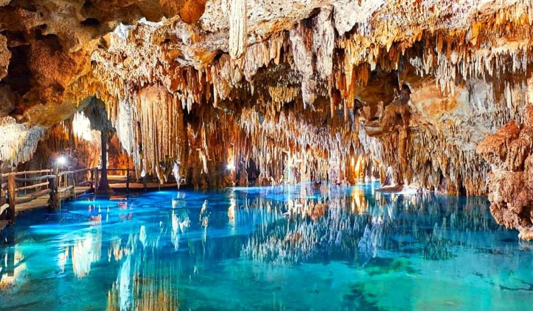 Then journey deep into the subtropical rainforest of the Yucatan to relax, swim and snorkel in the crystal clear fresh waters of a massive “cenote”, and marvel at the thousands of spectacular stalagmites and stalactites that surround you at every turn.