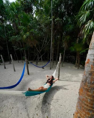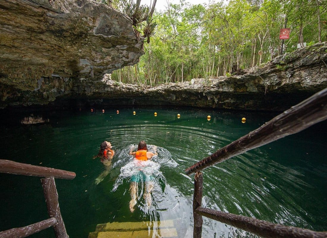 Immerse yourself in the tranquil waters of the cenotes, their beauty and clarity embracing you as you swim.