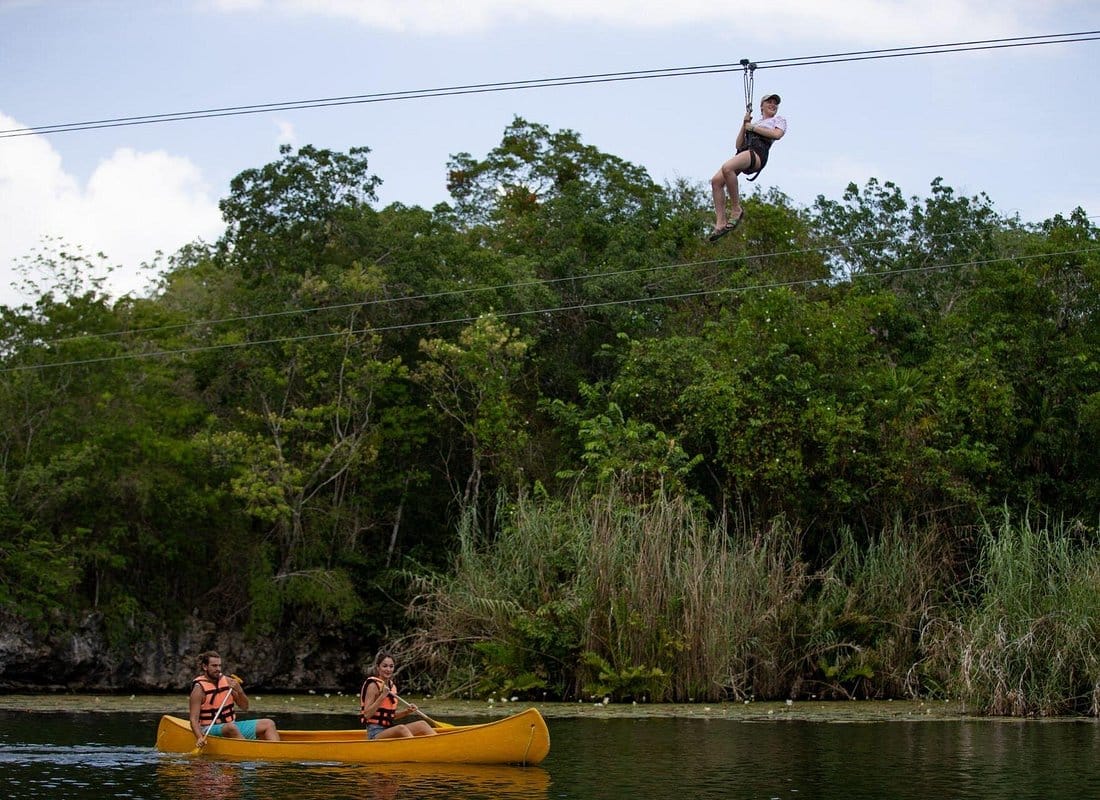 Zip Lining and Canoeing Feel the exhilaration as you zip line above the lush jungle canopy, your heart pounding with each soaring moment.