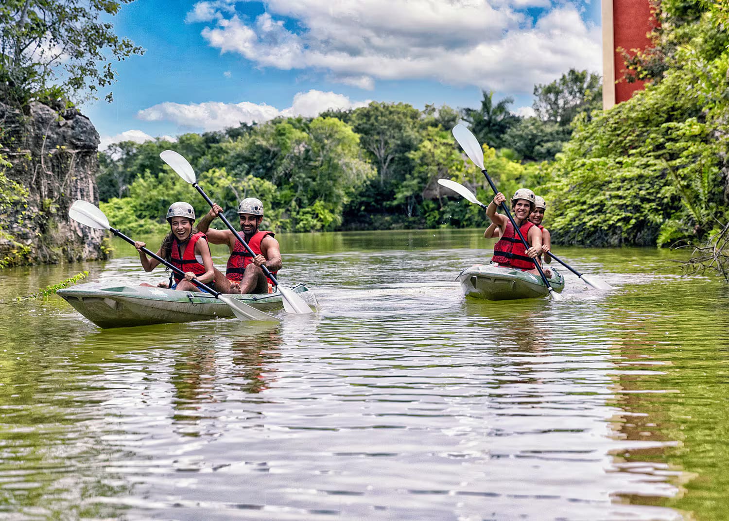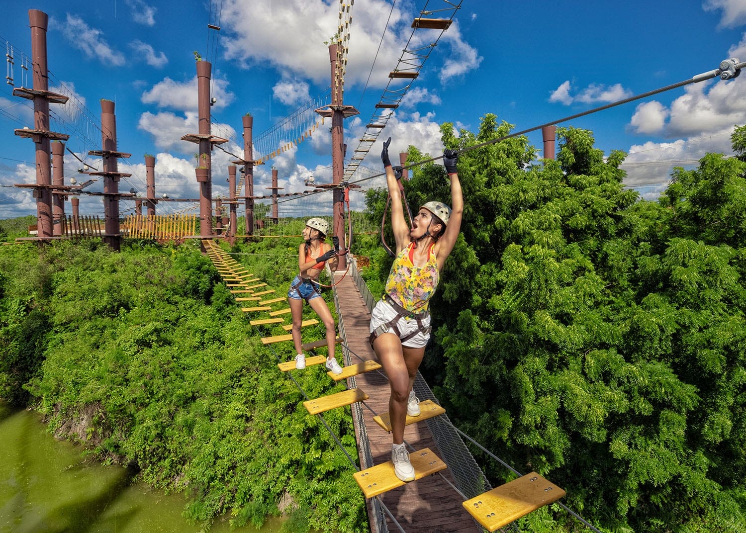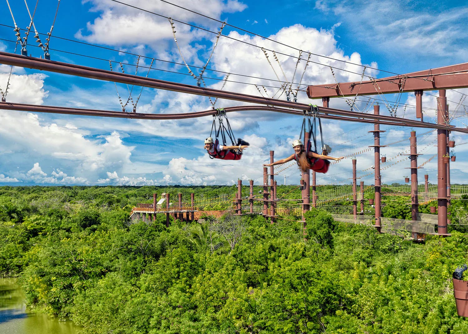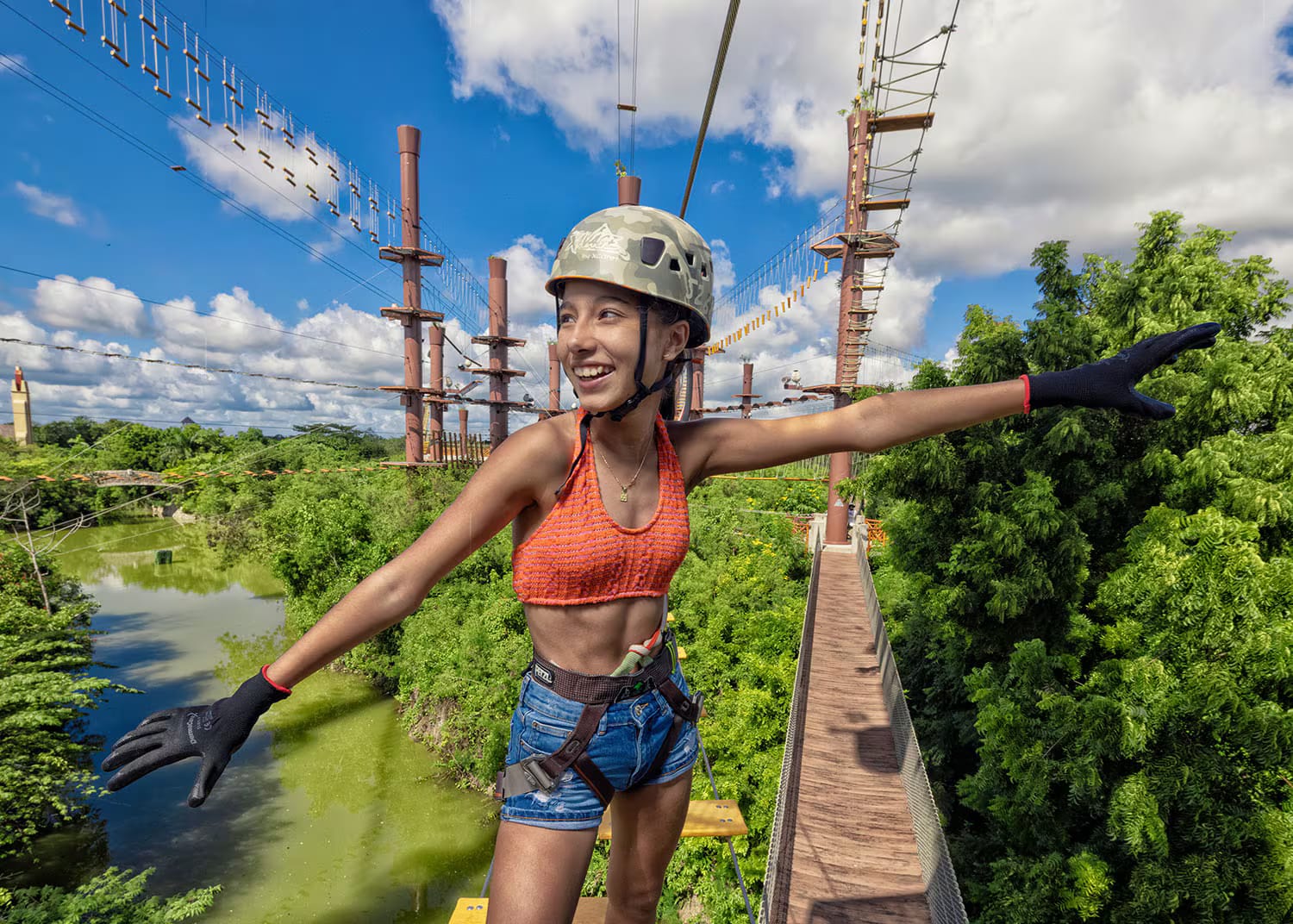 Have fun on a Ropes Course where you will pass through different obstacles while being suspended in the air. Get ready to paddle your Kayak by the only canals in Cancun. Children will get delighted in an area exclusively for them with waterslides, hanging bridges, and water jets.